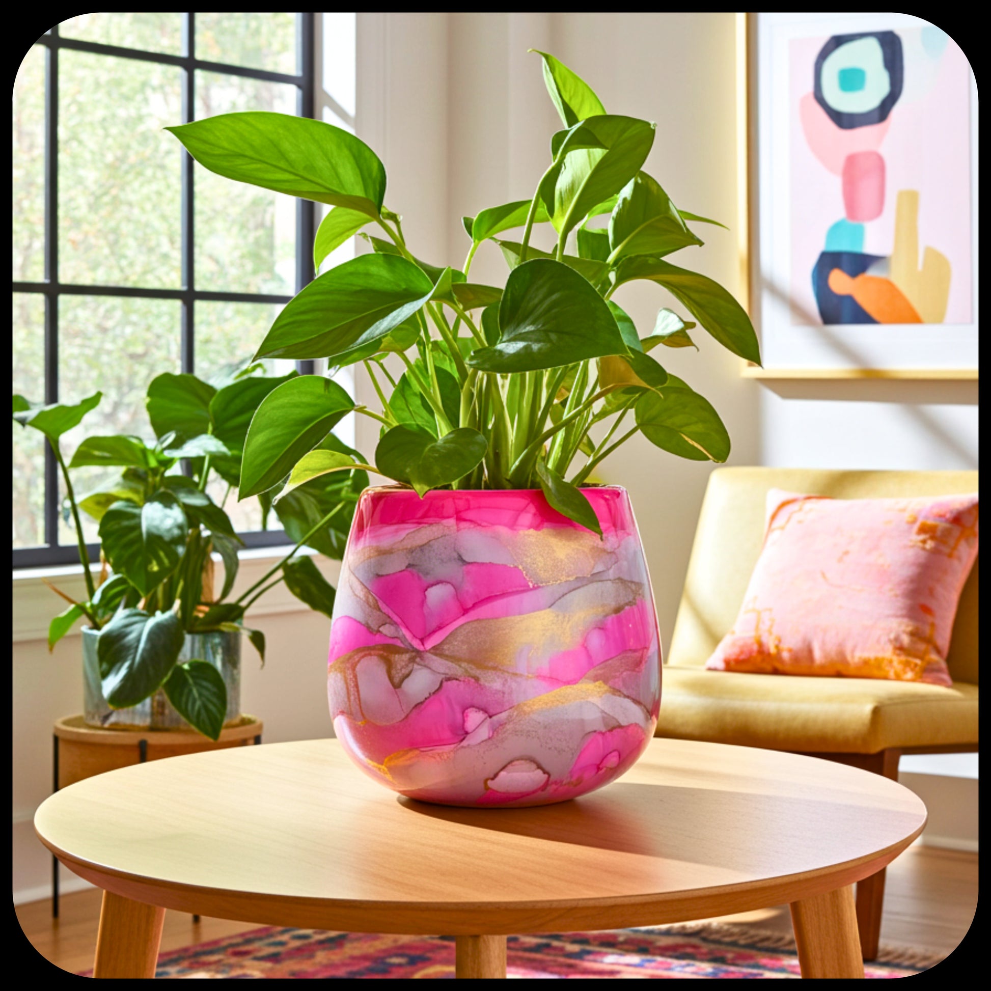 This stunning Exclusive French Rose Pink/Grey ceramic pot is hand painted with ink and gold leaf. It's the first time I've ever put these colours together. Love the way the grey lets the pink really pop!