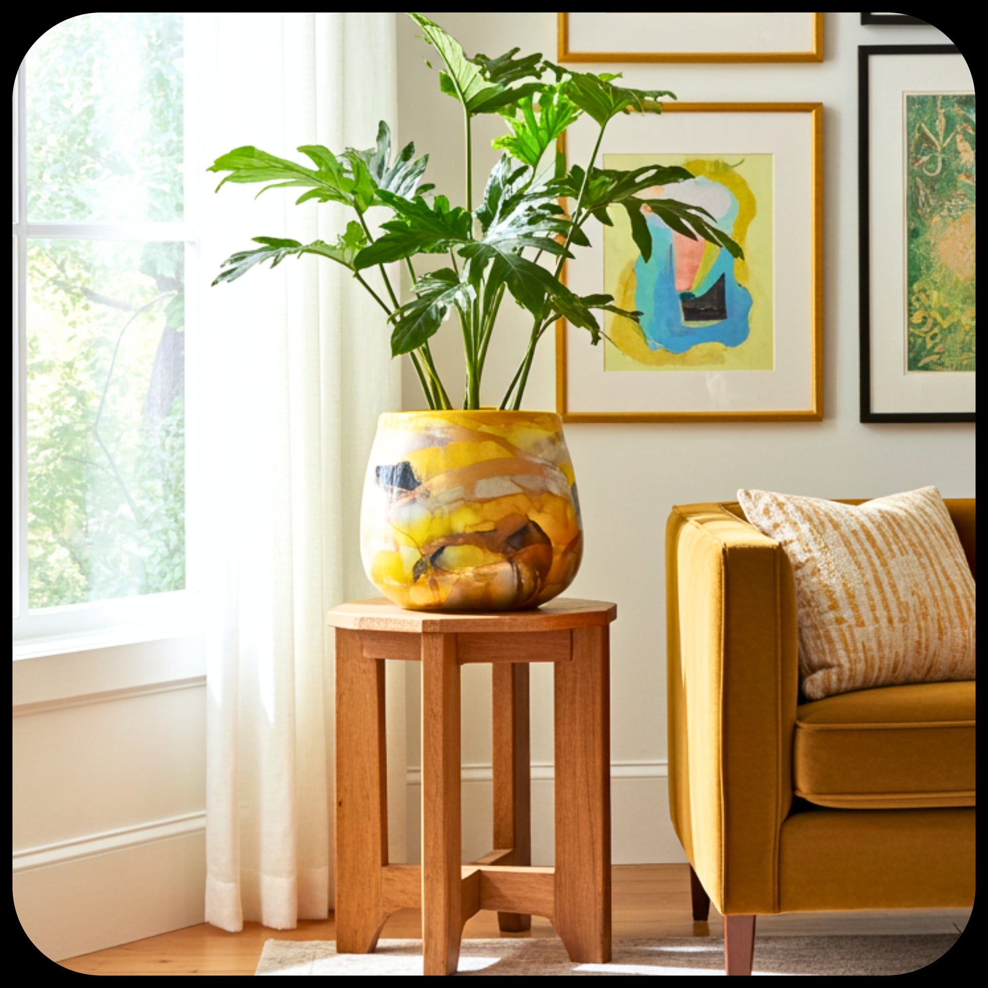 This stunning Exclusive Mustard/Black/Grey ceramic pot is hand painted with ink and gold leaf. The yellow turned out a lot brighter than I had planned! This piece is a very unusual and incredibly eye catching.