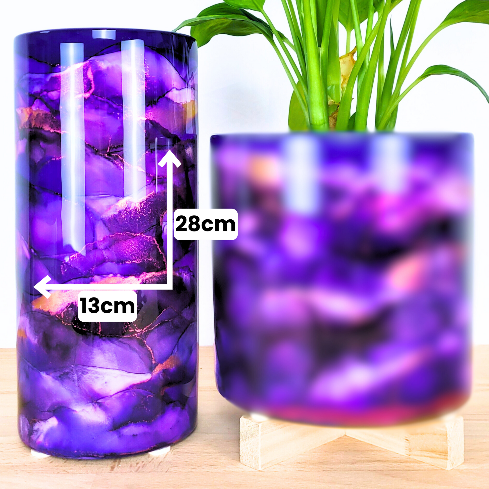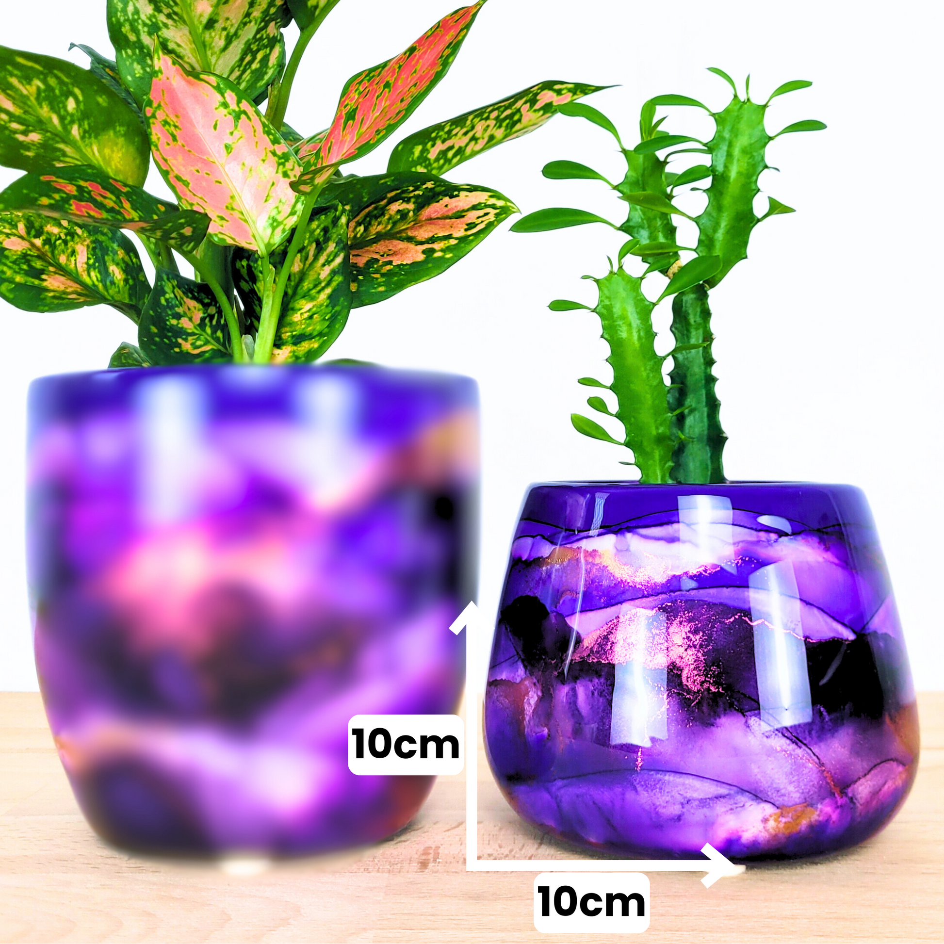 Meet Violet—your new favourite conversation starter. This hand-painted pot bursts with personality, blending soft lavender, rich purple, and moody plum tones with shimmering gold highlights that sparkle from every angle. No two are alike, so you're getting a genuinely unique piece of functional art. Whether you're styling it with trailing plants, fresh blooms, or displaying it solo as a sculptural accent, this vibrant beauty adds instant charm and character to any room.